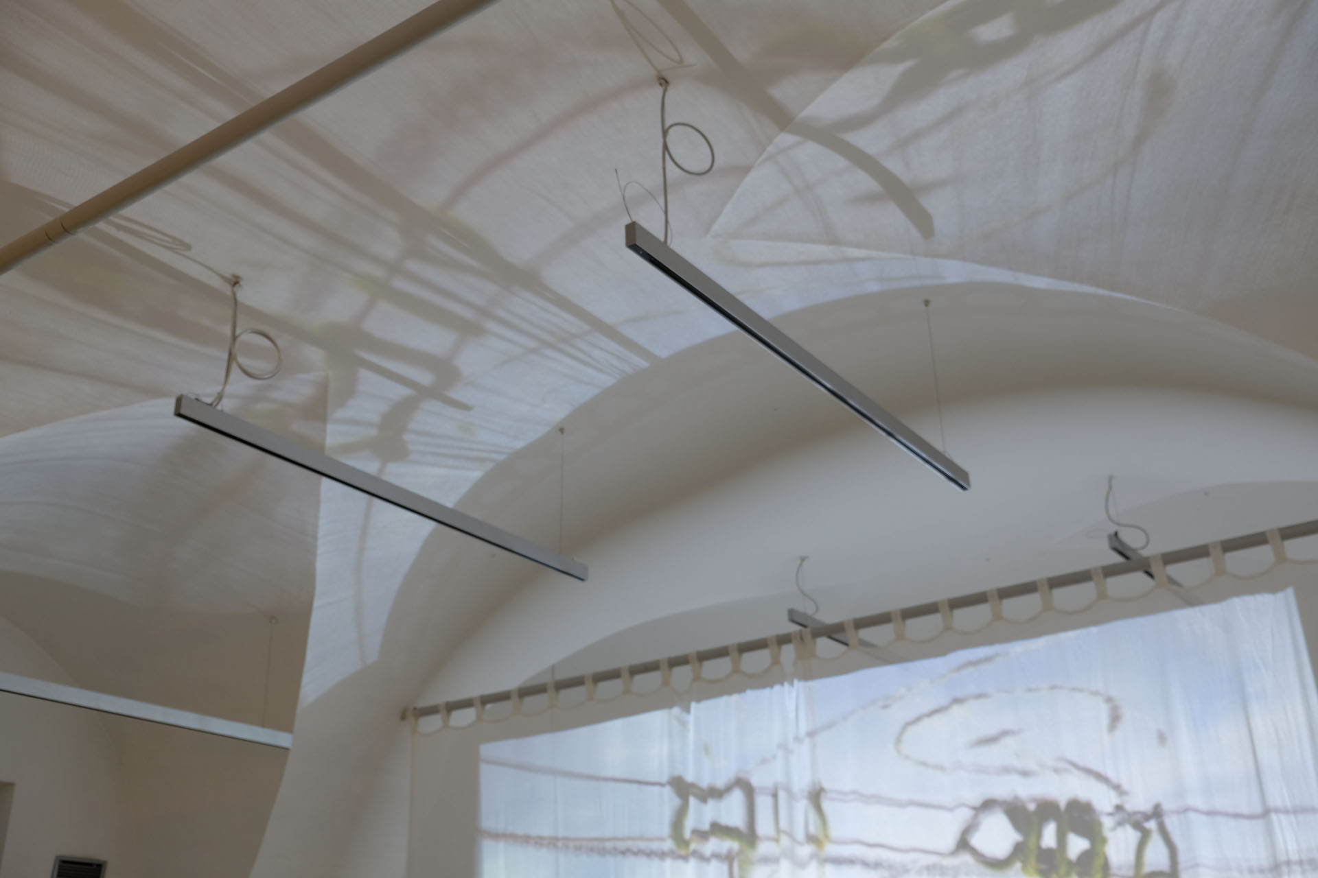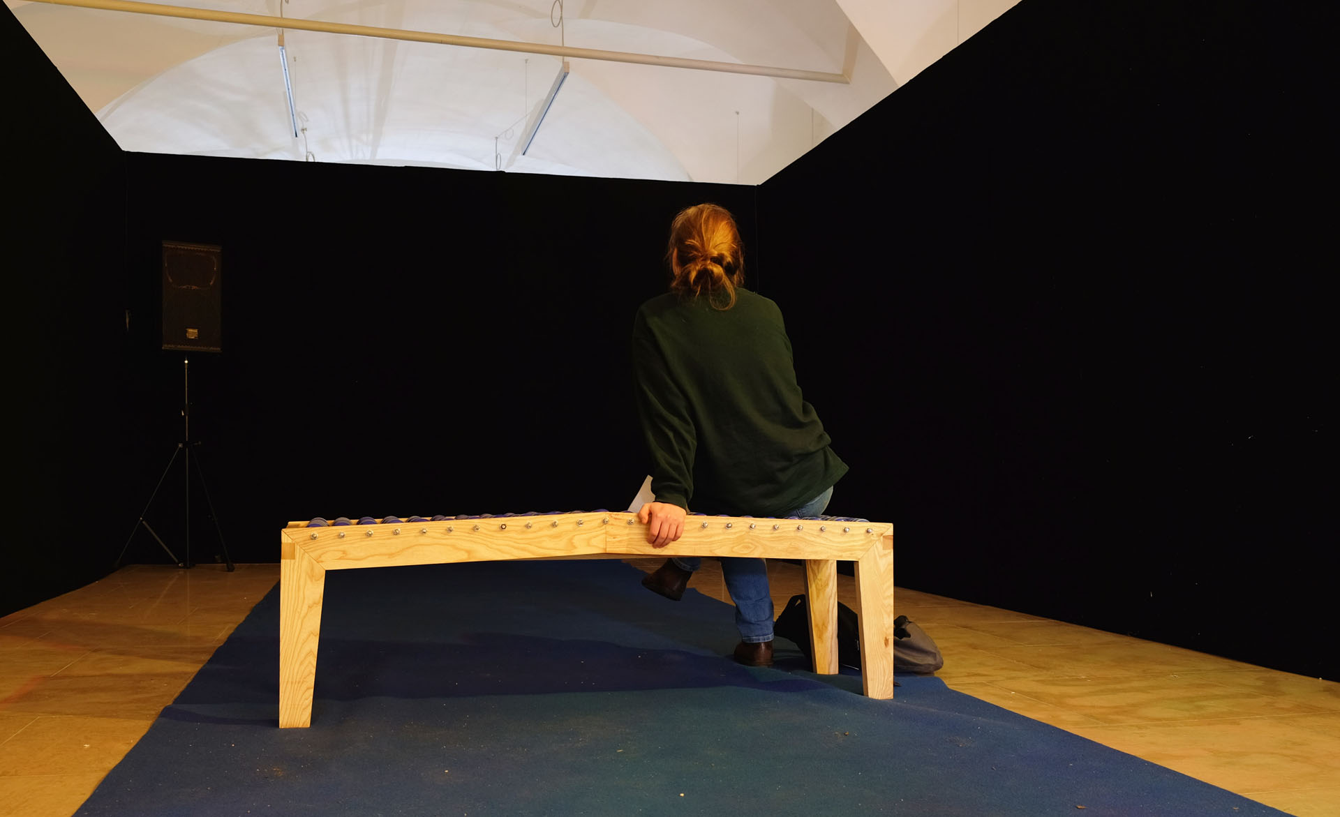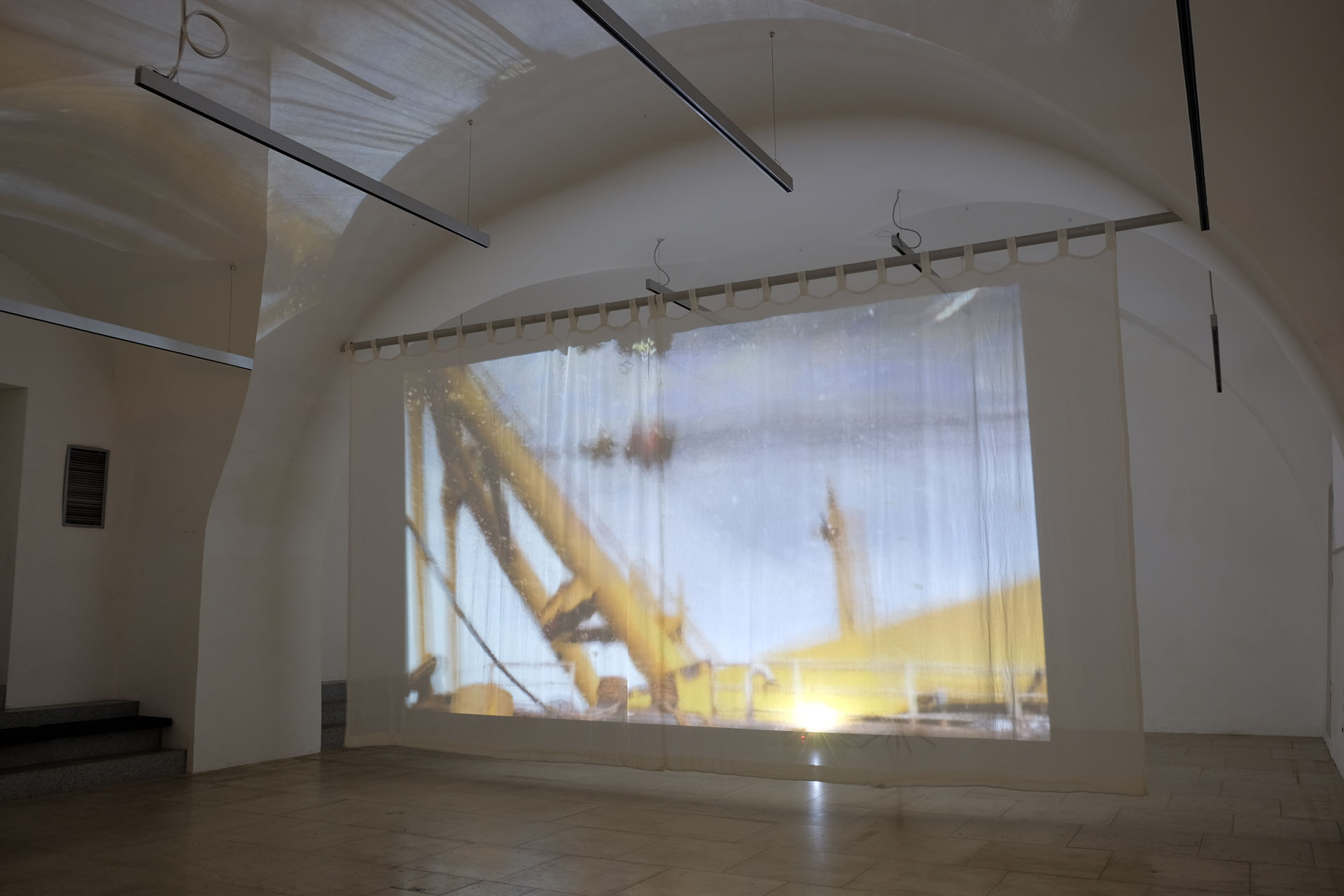 In der Mitte der Schleuse befindet sich das Ufer, das die Form klassischer Flussschiffholme annimmt und symbolisch für die Reise steht. Die Installation lädt den Betrachter ein, 15 Minuten lang akustisch an einer Schleuse teilzunehmen, um die enormen Dimensionen solcher Räume wahrzunehmen.